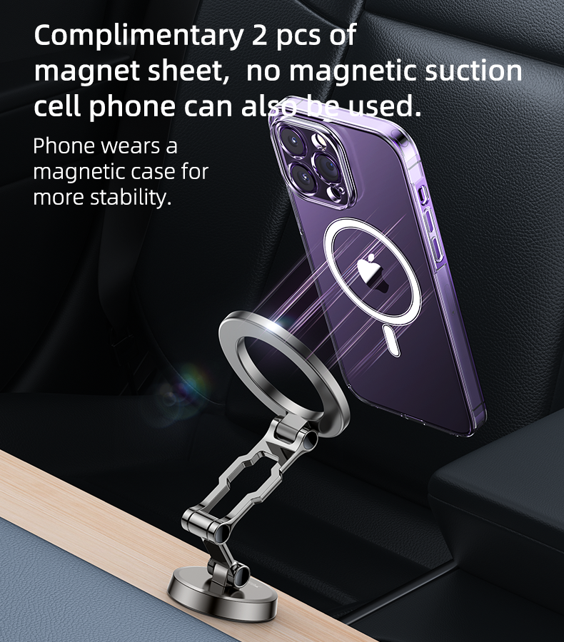Support de téléphone magnétique à stabilisation 3 axes, rotation 360°, design pliant en alliage de zinc