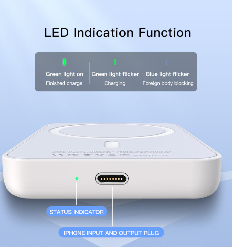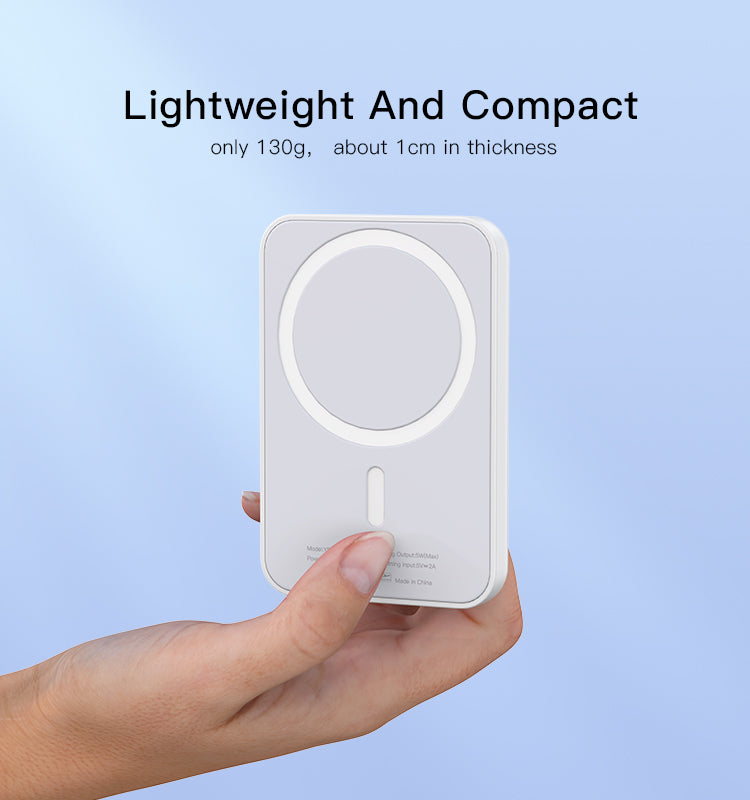 Cette batterie externe MagSafe 5000mAh a été pensée pour les utilisateurs d’iPhone 12 et 13 à la recherche de praticité et d’élégance. Grâce à son système magnétique puissant, elle se fixe directement à l’arrière de votre iPhone pour une recharge sans fil rapide et sécurisée, où que vous soyez.
