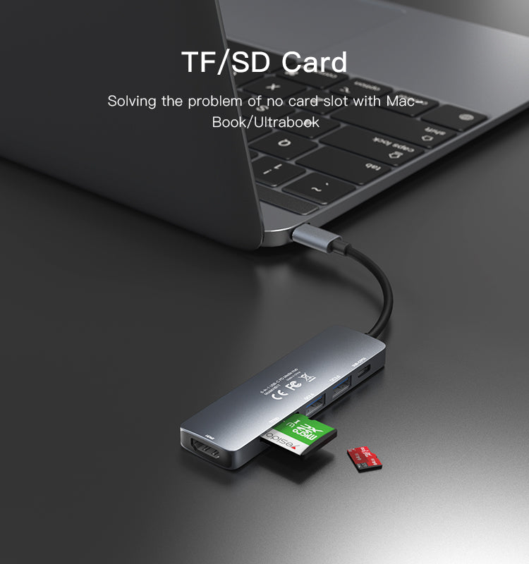 Hub multifonction 5-en-1 : USB 3.0, USB-C, lecteur carte SD et TF