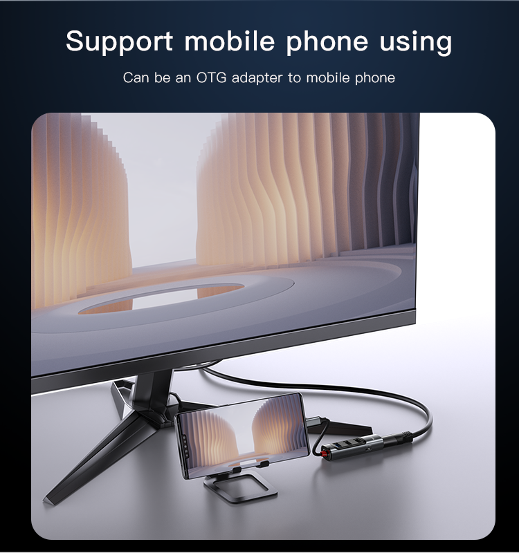 Hub USB-C YESIDO HB22 – 5-en-1 avec support téléphone, charge rapide 100W, boîtier aluminium multifonction
