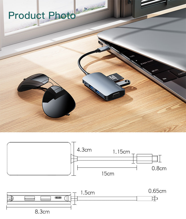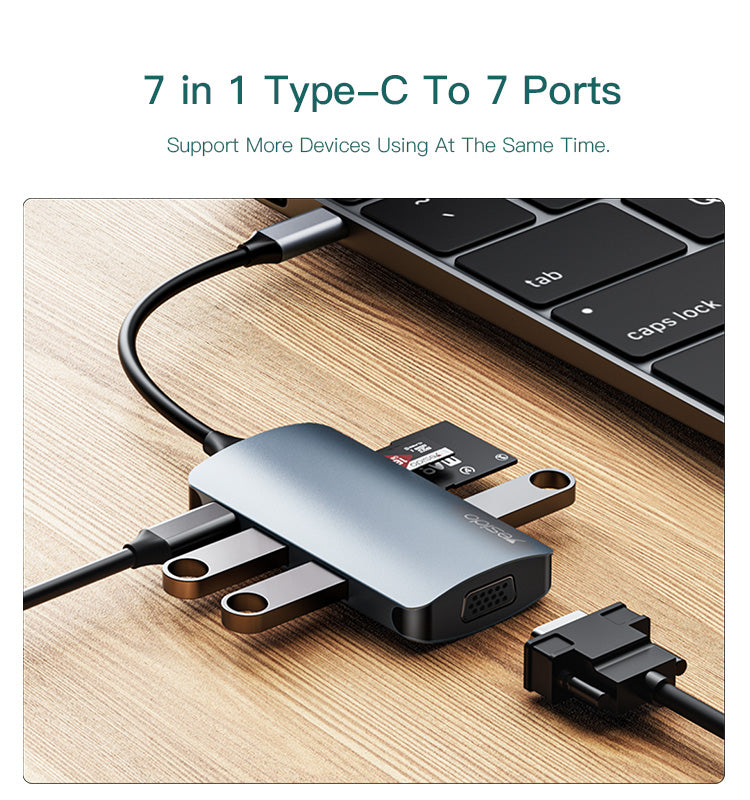 7 ports en 1 : USB-C PD 100W, 3 ports USB 3.0, HDMI, lecteur carte SD, lecteur carte TF