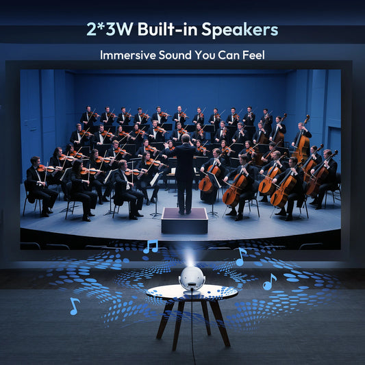 Wimius Mini projector 1080p support with 270° rotating bracket 300 ANSI 5G WiFi Bluetooth Auto Keystone Home Projector