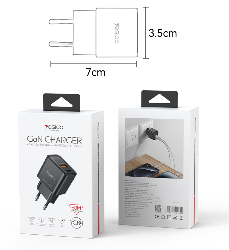 Chargeur – 48W double port USB-C + USB-A, PD 30W + QC 18W, charge rapide, prise EU
