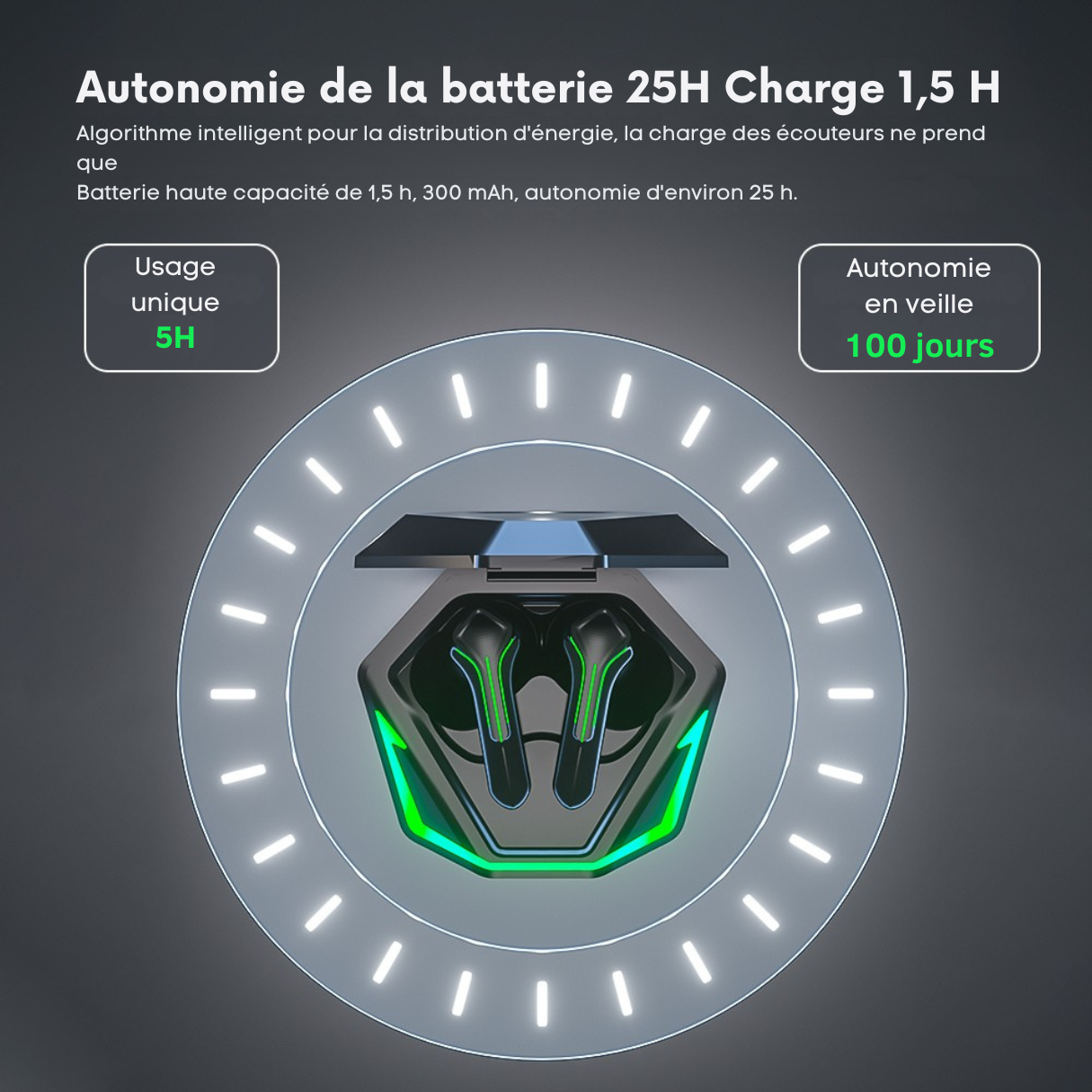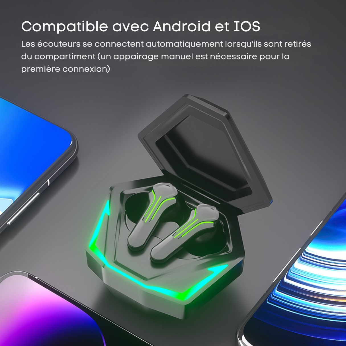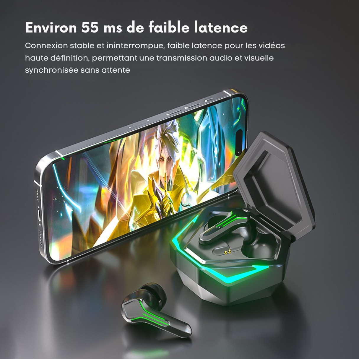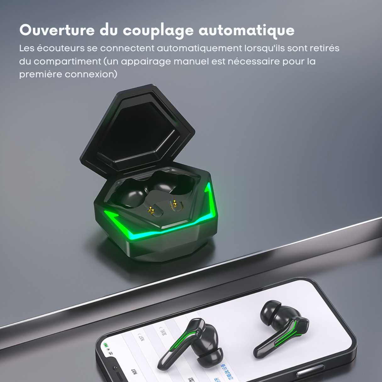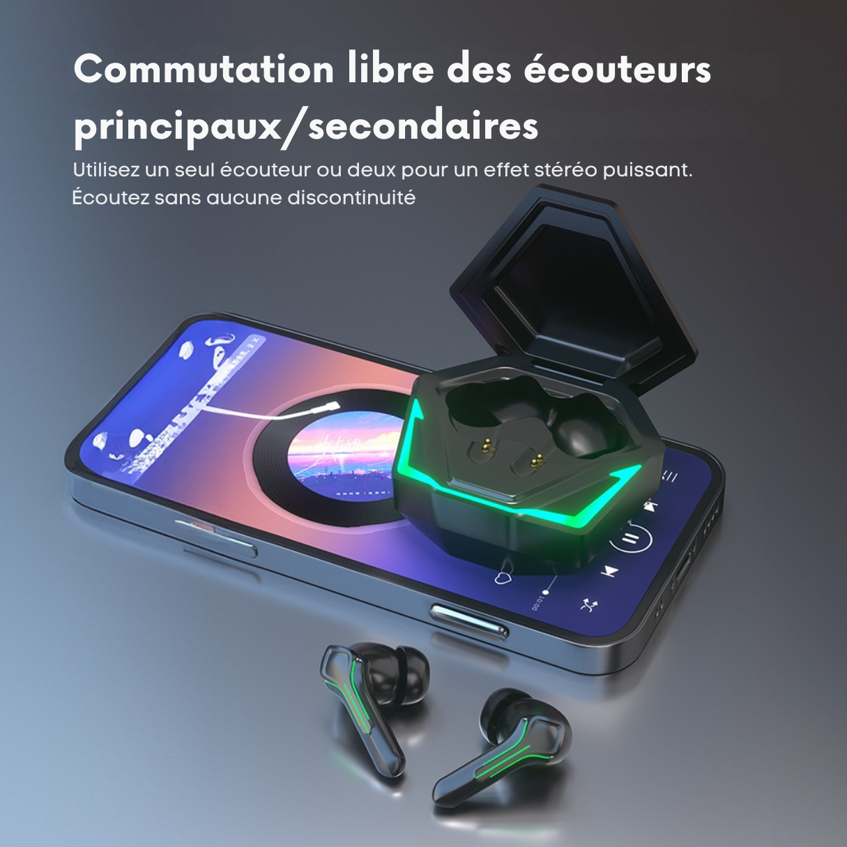 Écouteurs gaming au design cool et moderne, parfaits pour les joueurs à la recherche de performance et de confort.