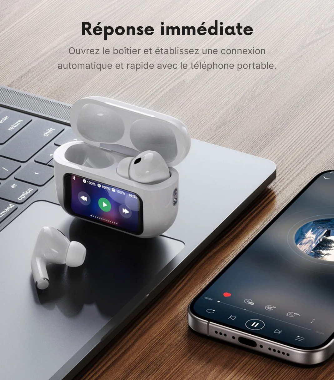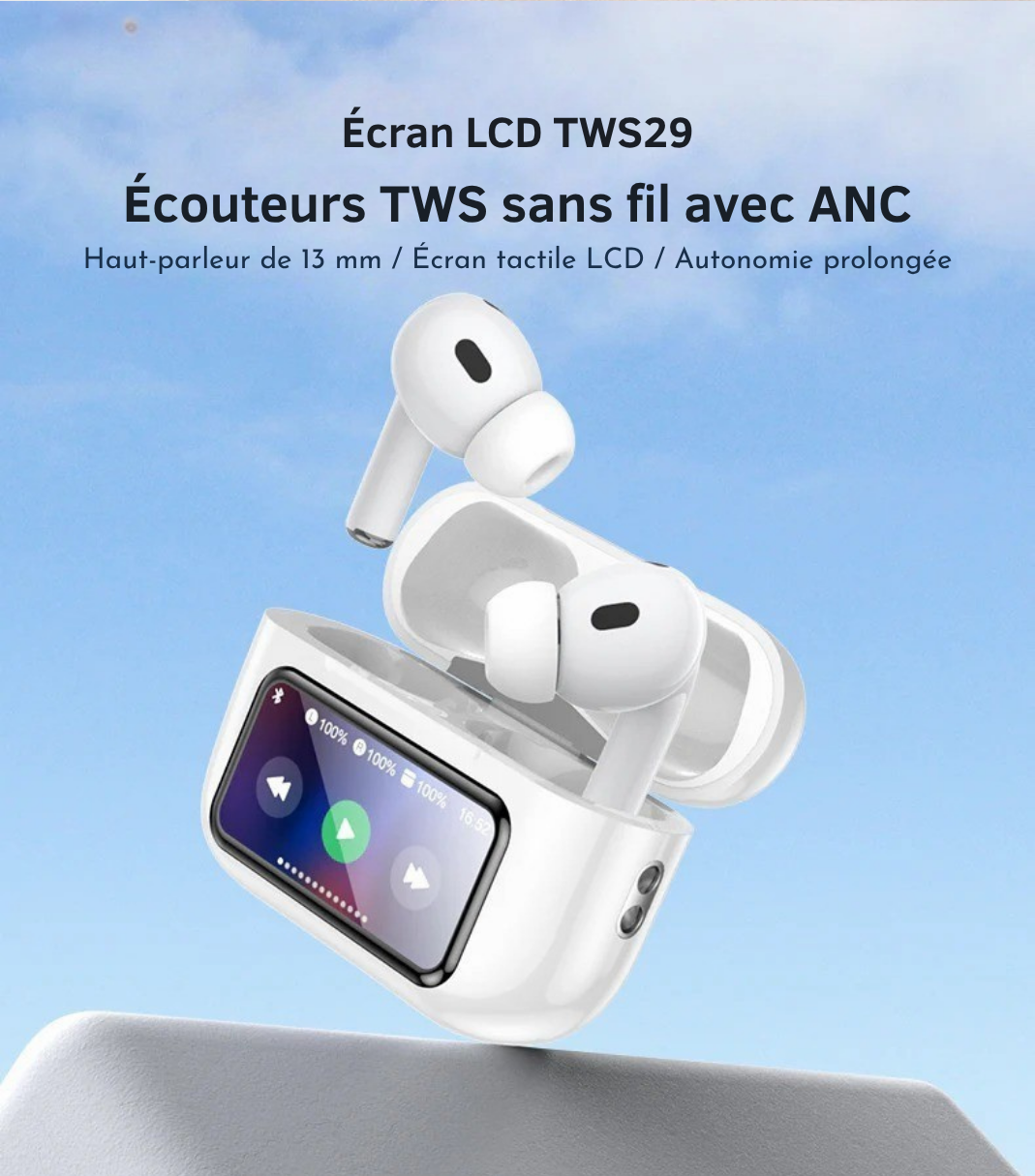 Plonge dans une expérience audio sans fil de nouvelle génération avec ces écouteurs TWS compacts et performants. Équipés d’un écran LCD intelligent, ils t’offrent un suivi clair de l’autonomie restante.