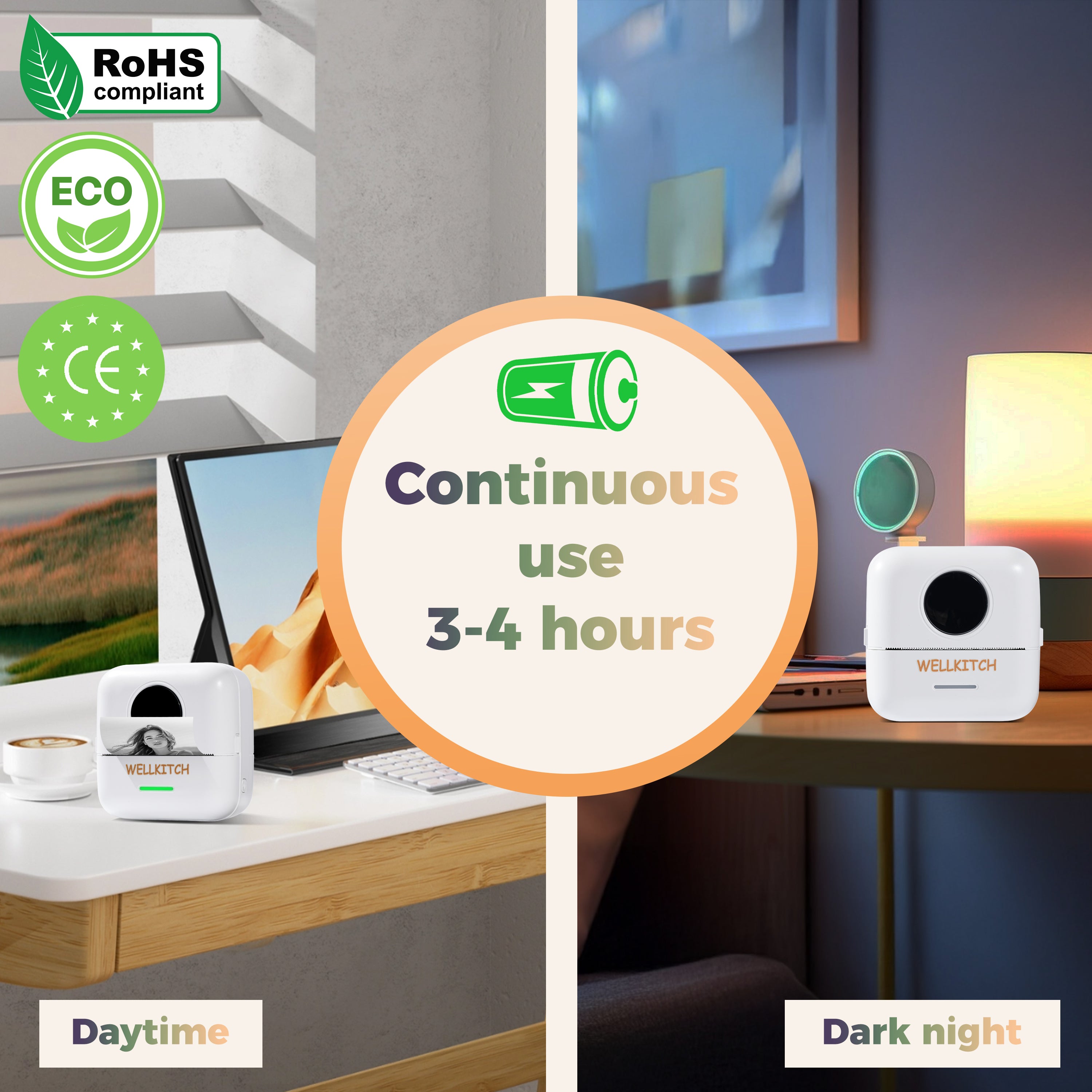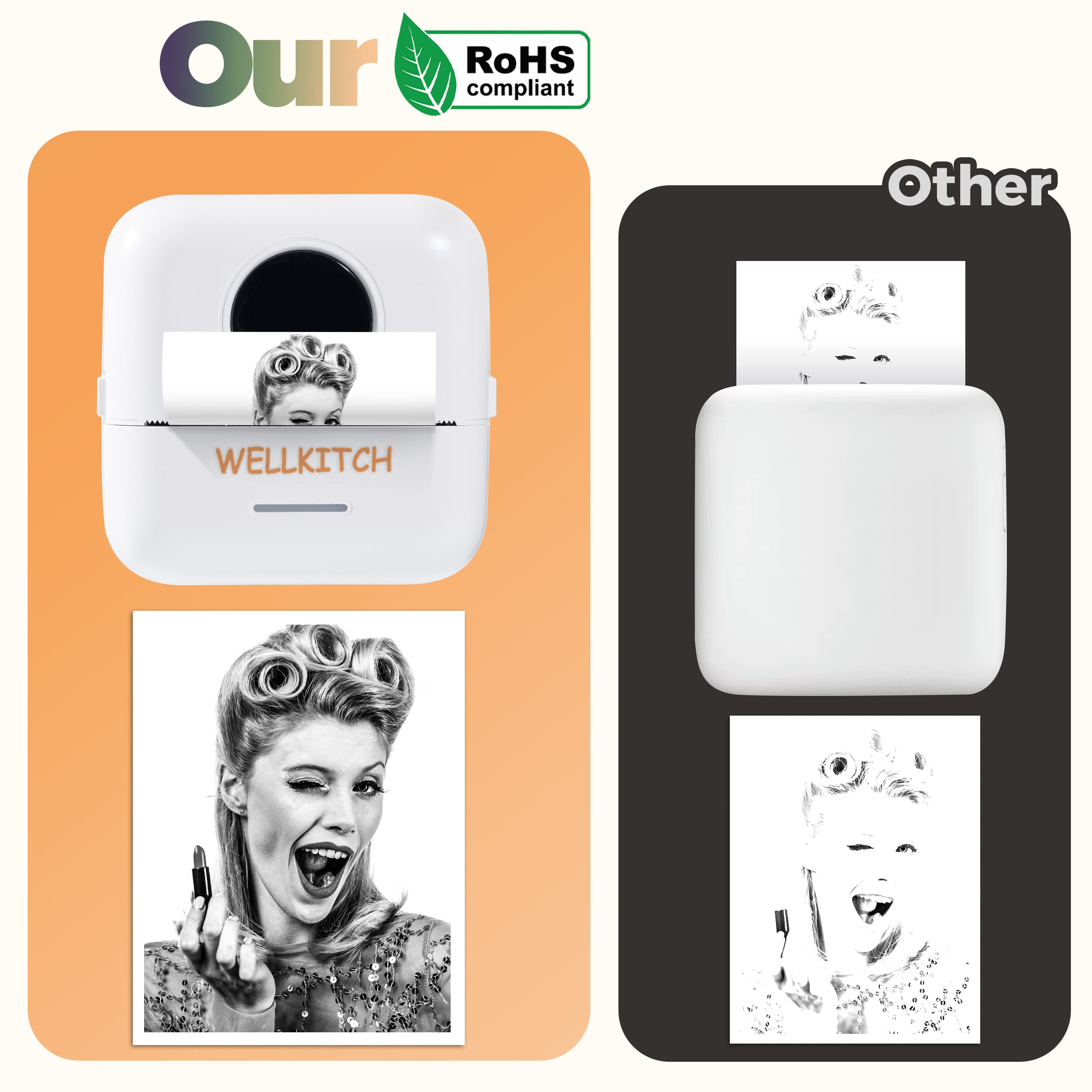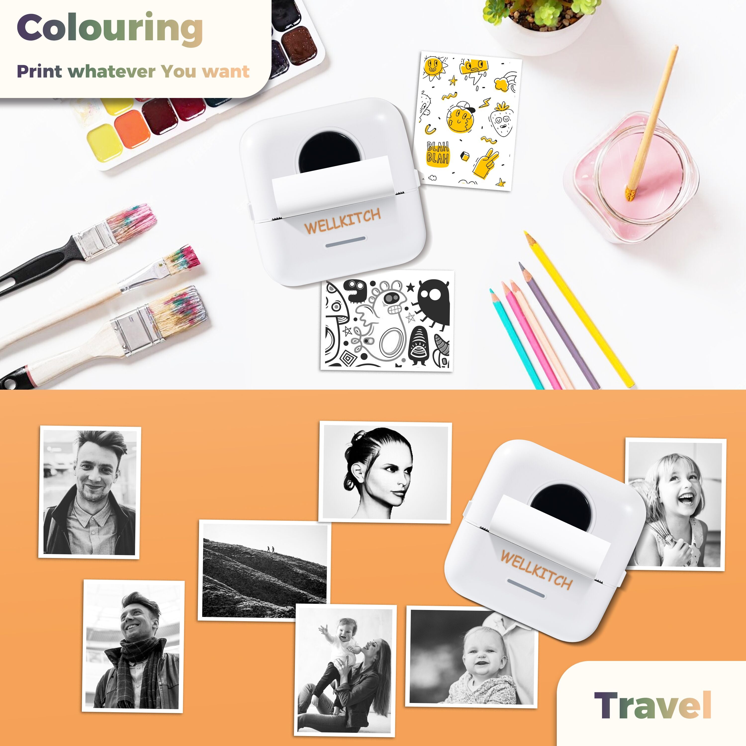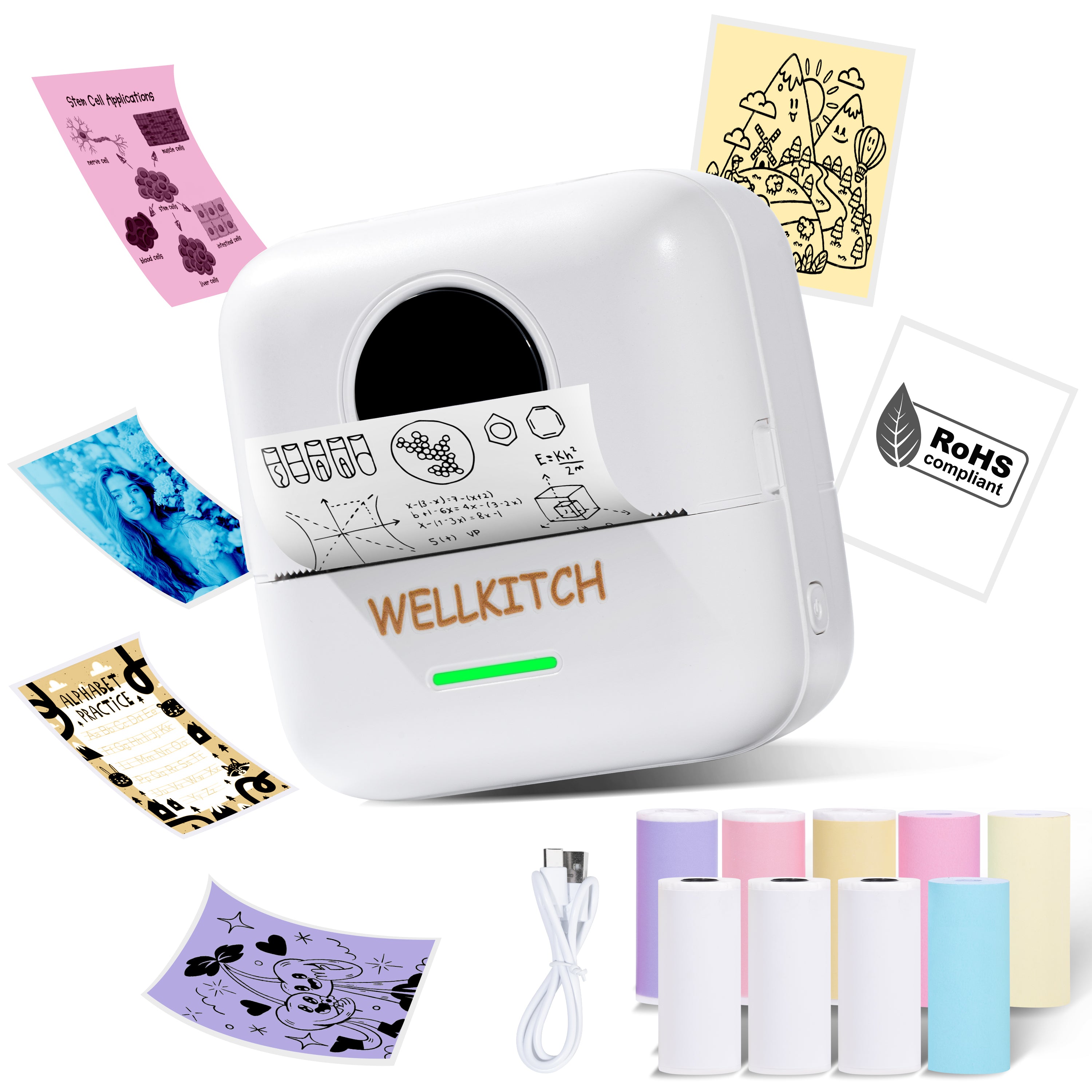 Mini imprimante thermique portable rose avec 13 rouleaux – Impression tickets, étiquettes & notes