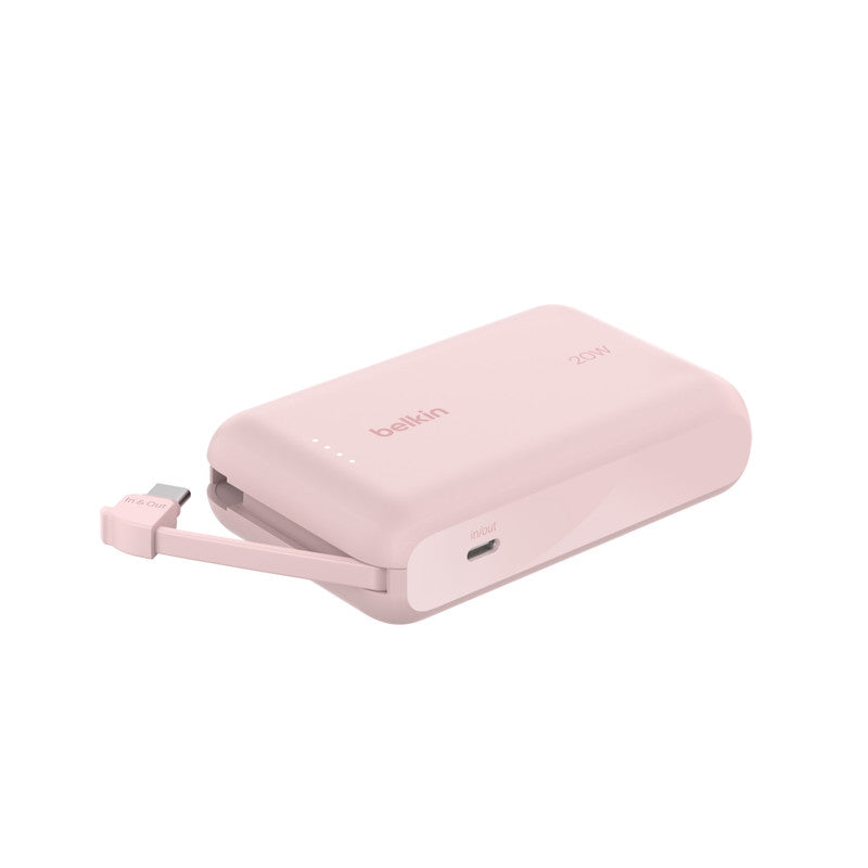 Batterie de secours 10 000 mah avec câble usb-c intégré, design compact, recharge rapide et pratique pour smartphones et tablettes, finition bleue - belkin