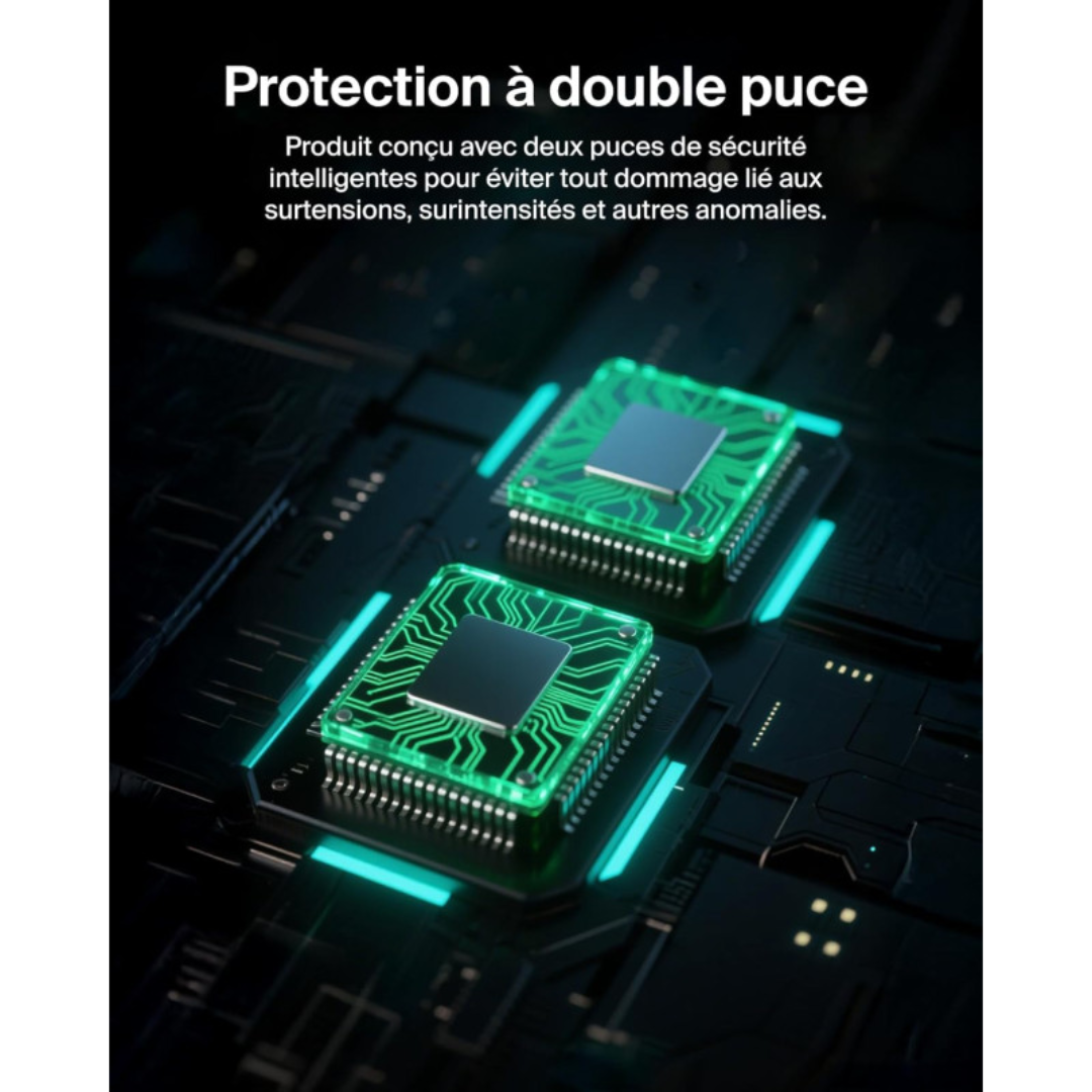 Conçue avec des systèmes de sécurité intégrés, elle protège contre les surtensions, les surcharges et la surchauffe, garantissant une utilisation fiable et durable.