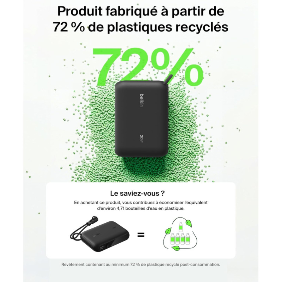 La batterie externe Belkin BPB027hqBK 10 000 mAh est l’alliée idéale pour rester chargé en toutes circonstances. Avec sa capacité élevée, elle permet de recharger plusieurs fois ton smartphone et de prolonger l’autonomie de tes appareils où que tu sois.