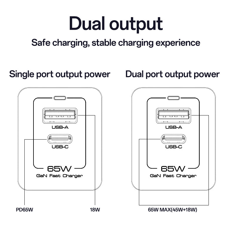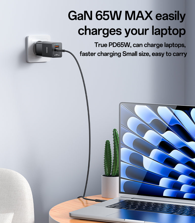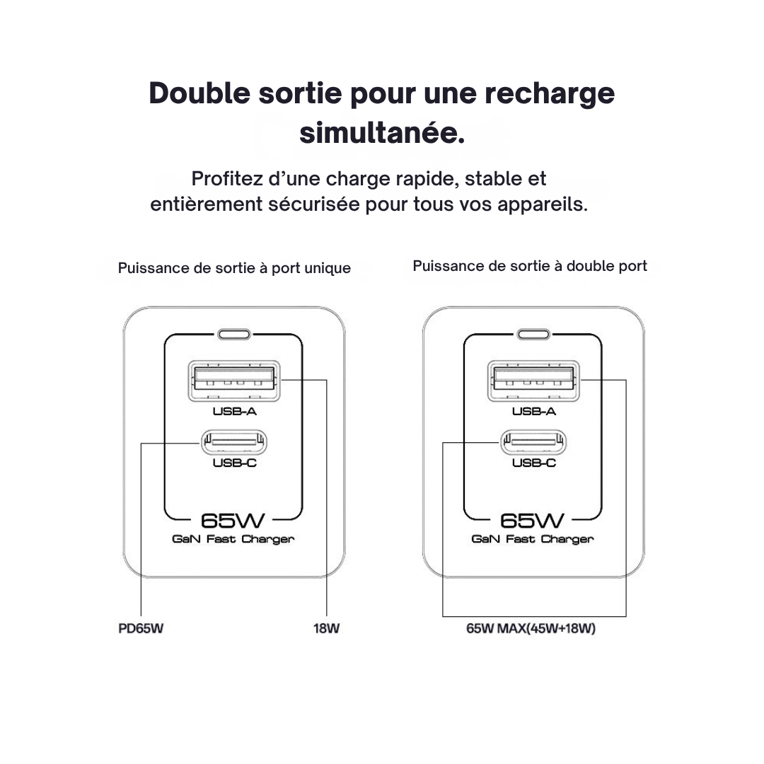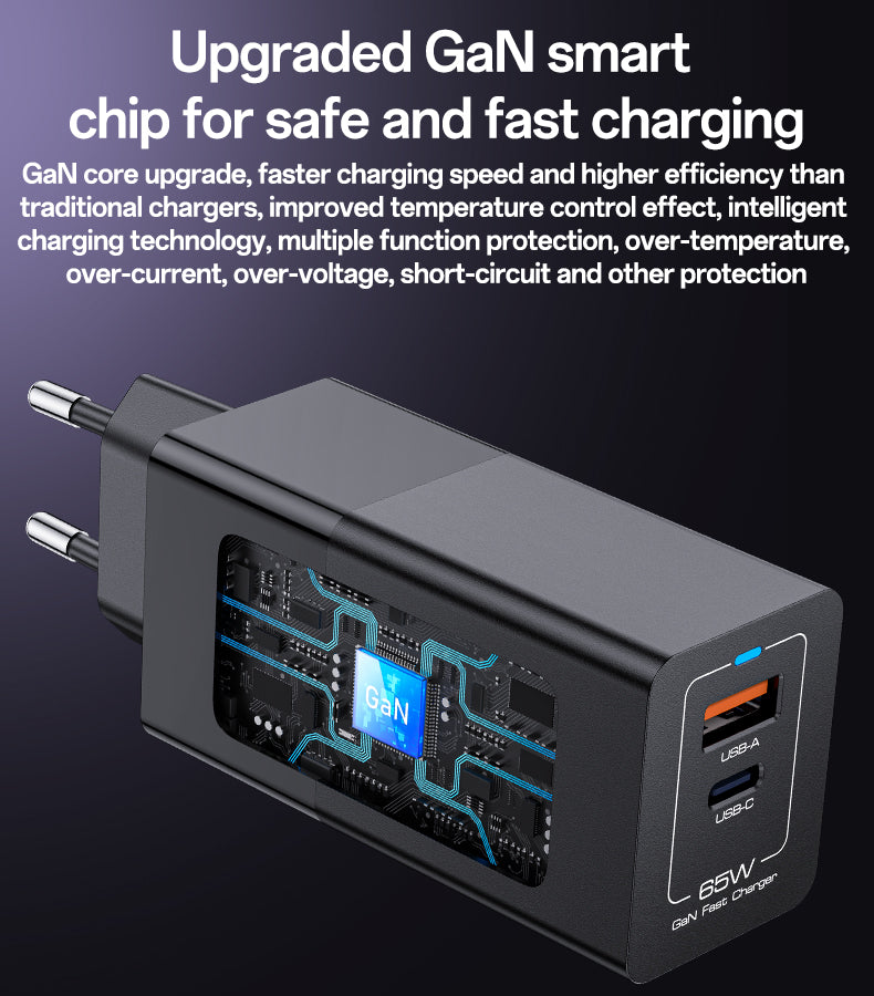 Puissance de charge rapide 65W avec technologie GaN : plus efficace et plus sûr