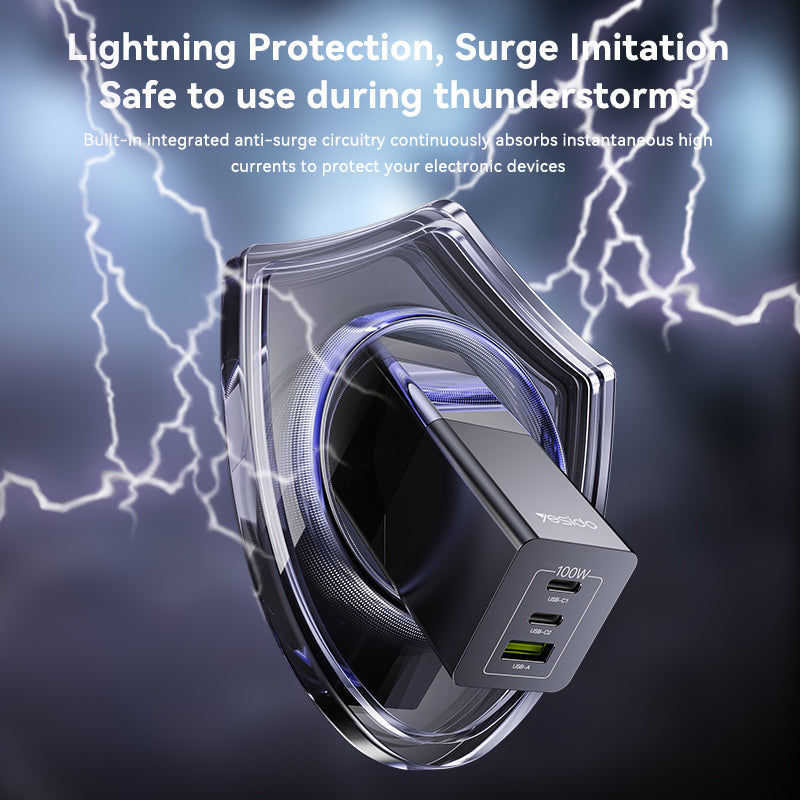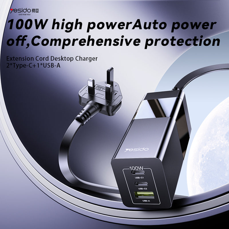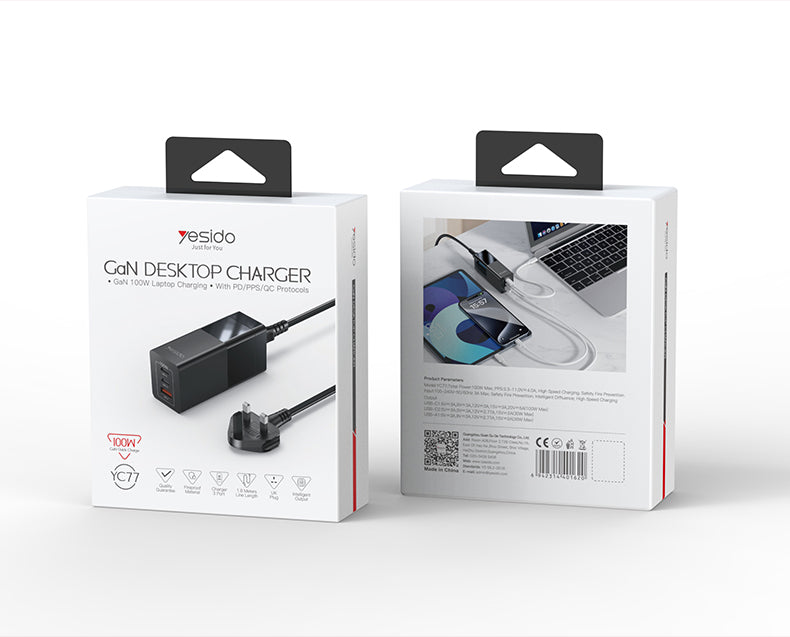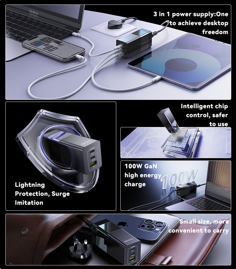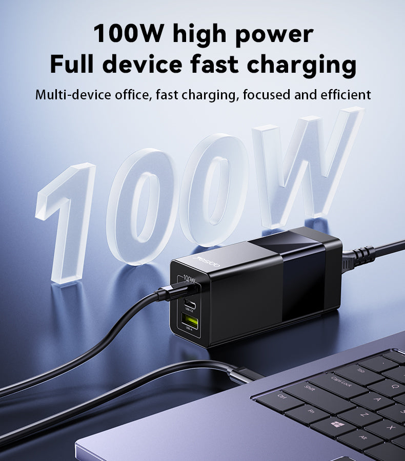Chargeur secteur intelligent 100W – USB + double USB-C, charge rapide multi-appareils, compatibilité universelle