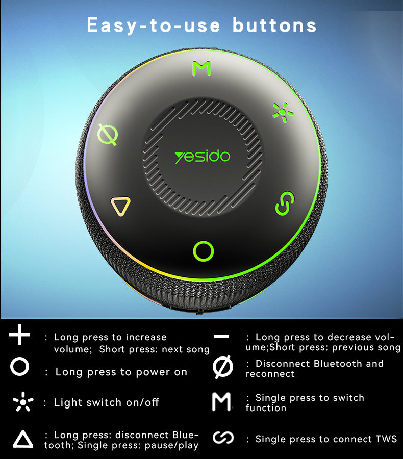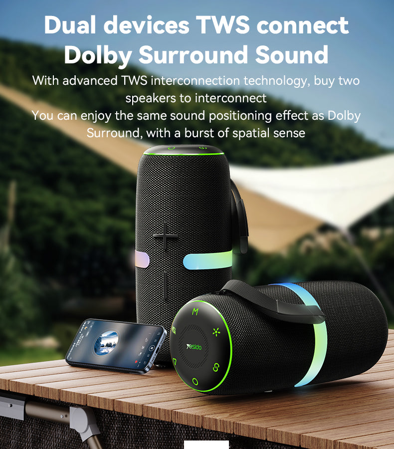 Transformez chaque moment en véritable expérience sonore avec l’enceinte Bluetooth YESIDO 30W. Conçue pour les amateurs de musique en plein air, elle délivre un son clair et puissant, accompagné de basses profondes et percutantes.