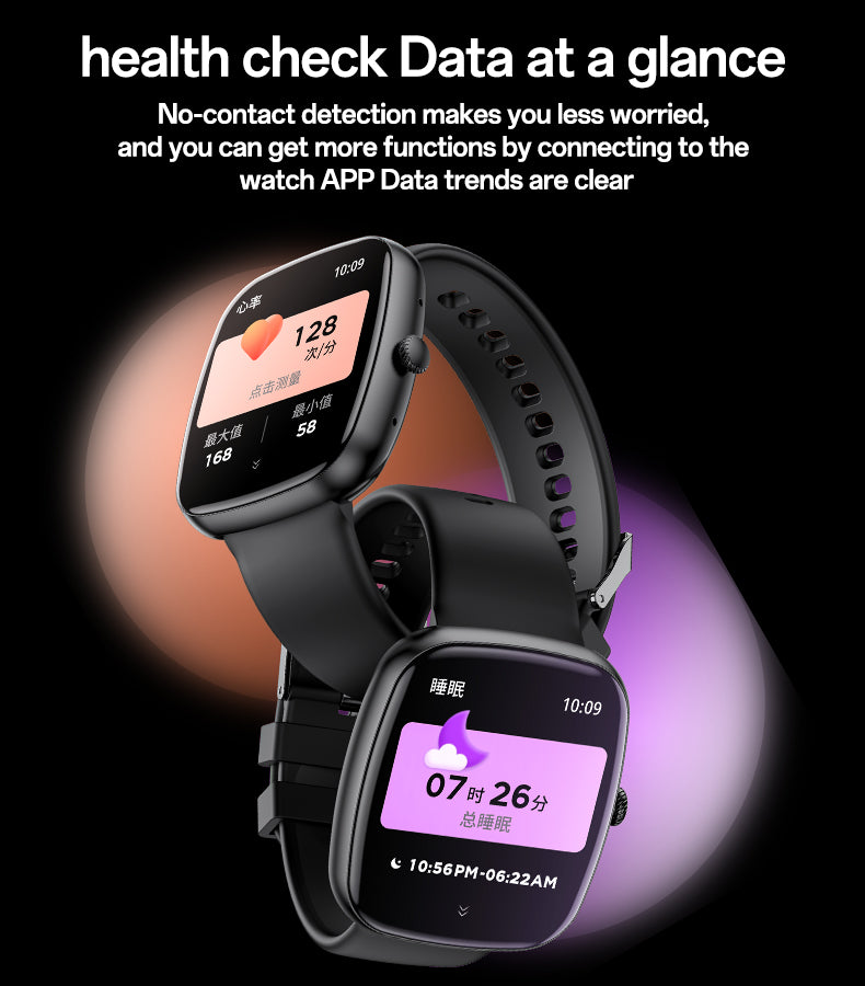 Pensée pour vous accompagner au quotidien, cette montre connectée équipée d’un écran TFT 1.83 pouces vous offre un affichage clair et confortable, que ce soit pour surveiller votre santé, recevoir vos notifications ou suivre vos activités.