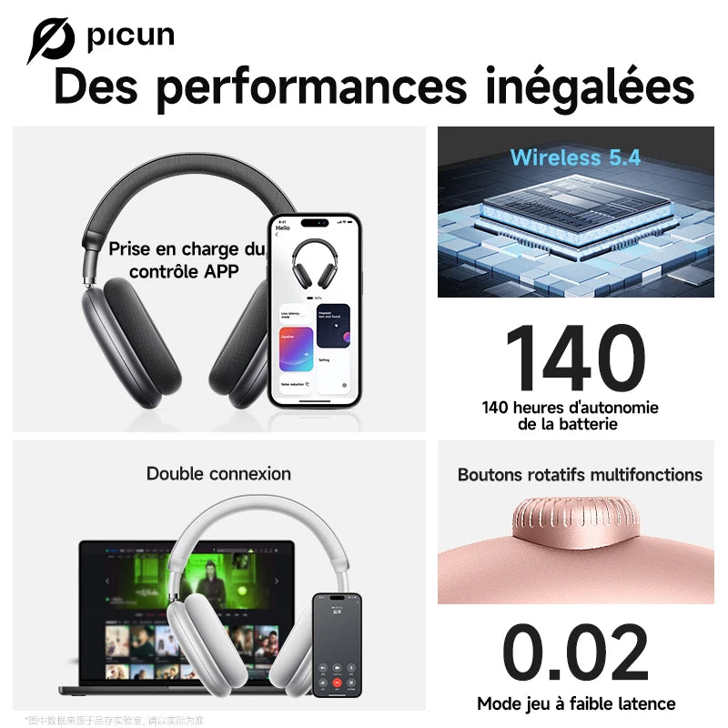 Le Picun F8 Pro est un casque sans fil nouvelle génération conçu pour offrir une expérience sonore immersive et précise. Grâce à l’audio spatial 3D combiné au suivi de tête dynamique, il adapte la scène sonore à vos mouvements pour une immersion naturelle. Ce casque Bluetooth se distingue également par sa réduction active du bruit -52 dB qui neutralise efficacement les nuisances extérieures.