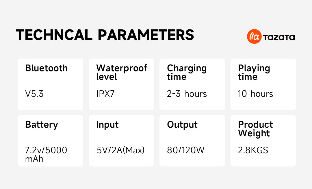 Avec la TAZATA BOOMBLAST PRO, vos fêtes prennent une toute nouvelle dimension. Grâce à sa puissance de 80W, cette enceinte Bluetooth portable offre un son clair, profond et dynamique, idéal pour animer une soirée entre amis, un pique-nique ou même un moment chill à la maison.