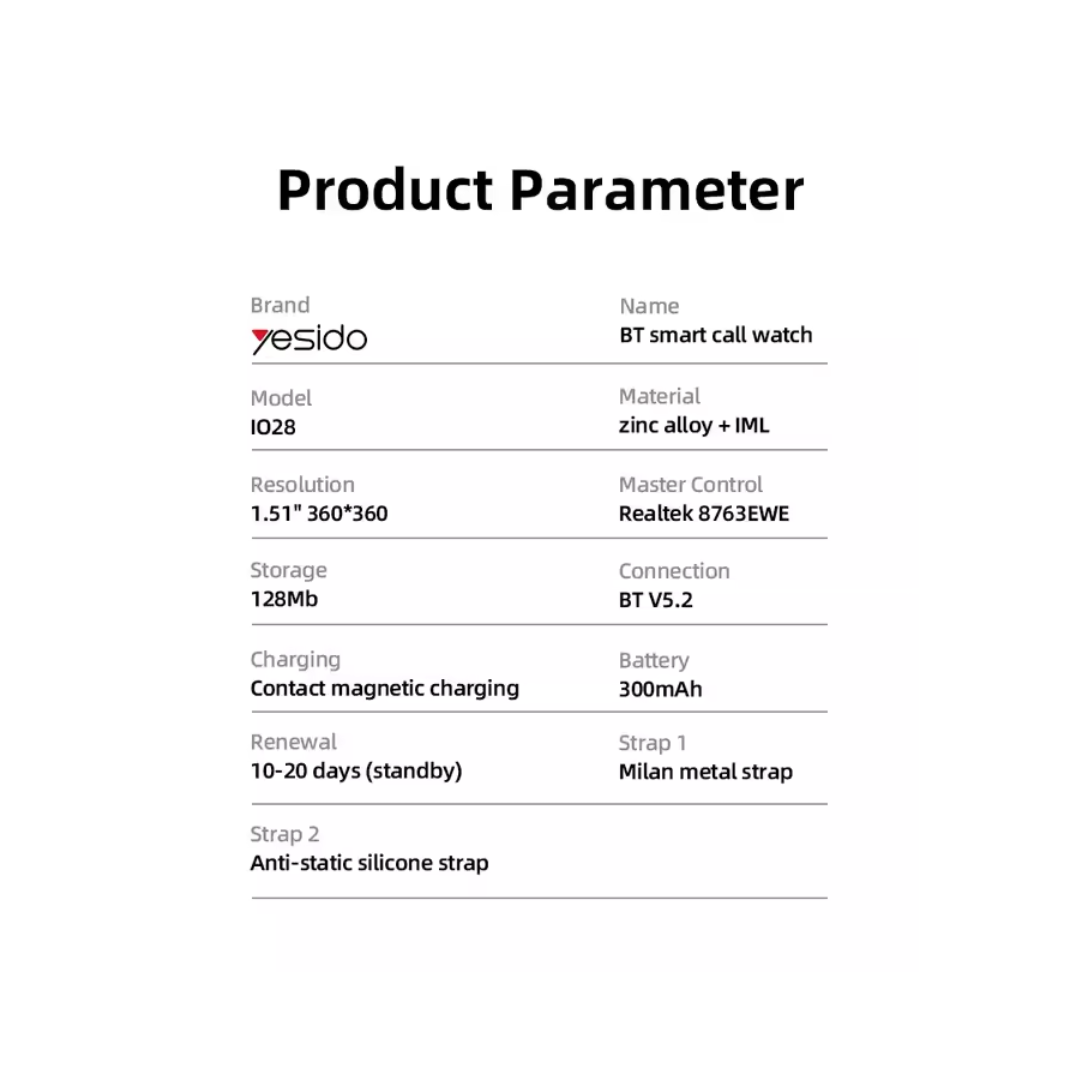 La montre Yesido allie design haut de gamme et fonctionnalités avancées. Avec sa finition en alliage de zinc, son double bracelet inclus et sa capacité à passer des appels HD en Bluetooth, elle s’adapte à tous les styles et à toutes les situations.